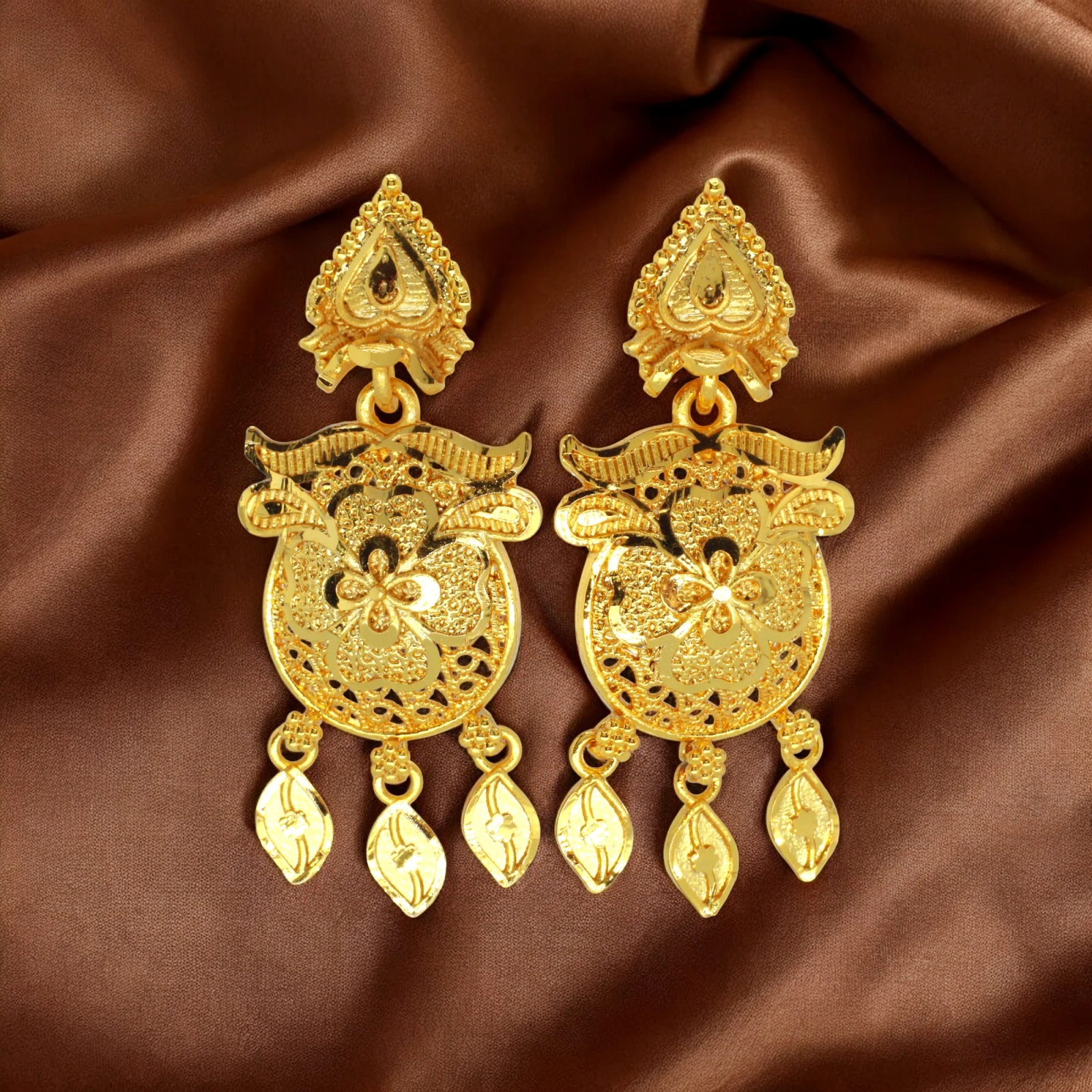 A brilliant gold-plated choker necklace paired with matching earrings, perfect for special occasions.