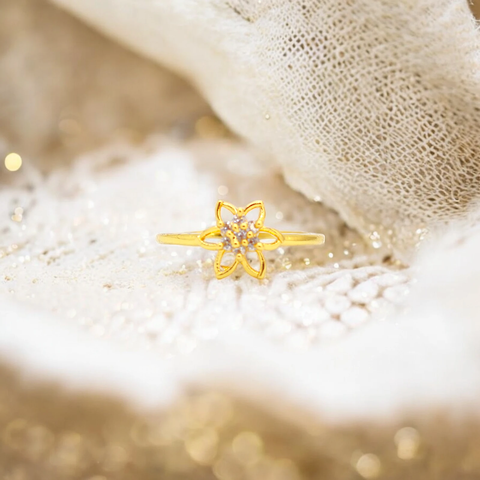 Embrace vintage glamour with this gold-polished ring featuring an intricate Art Deco design and dazzling CZ stones.