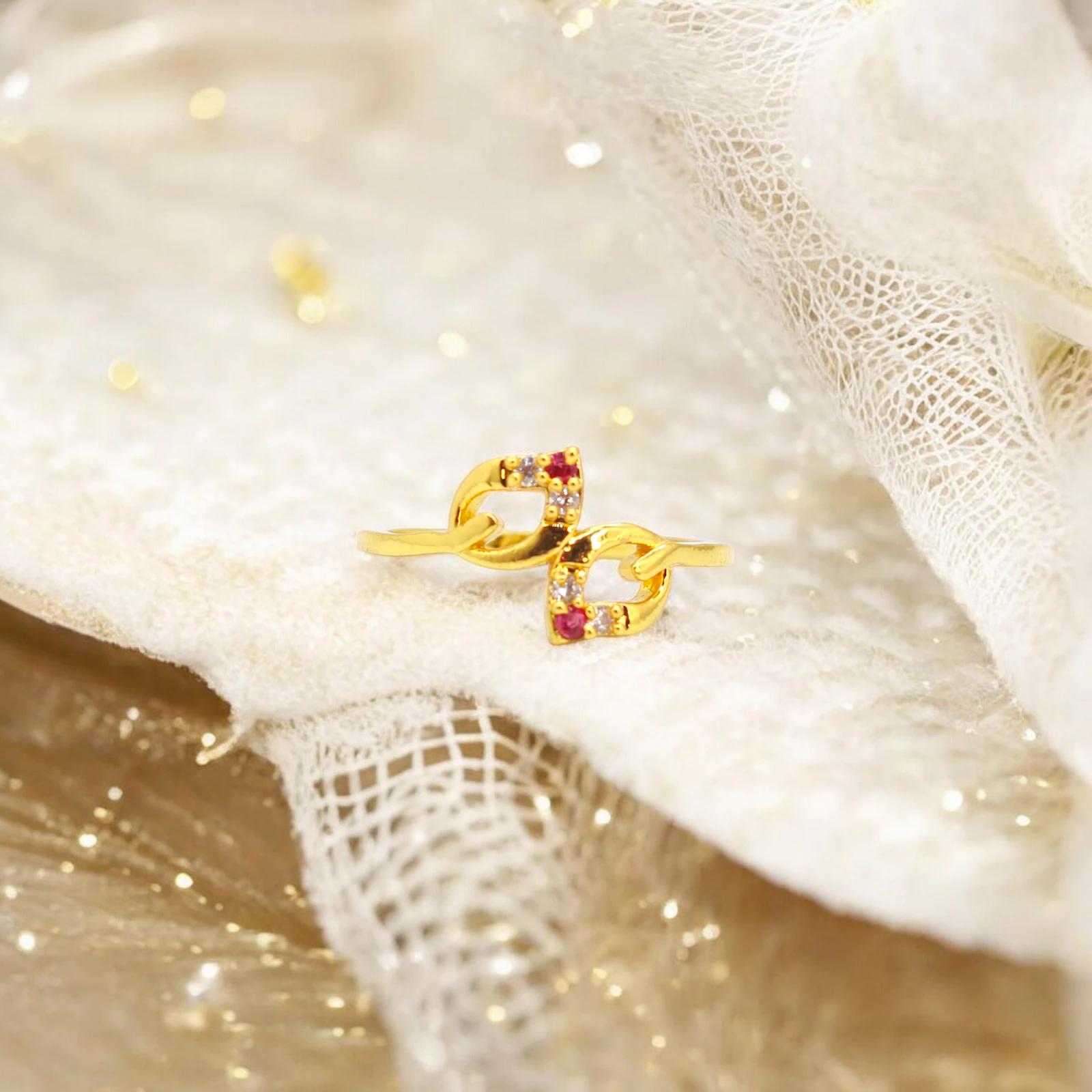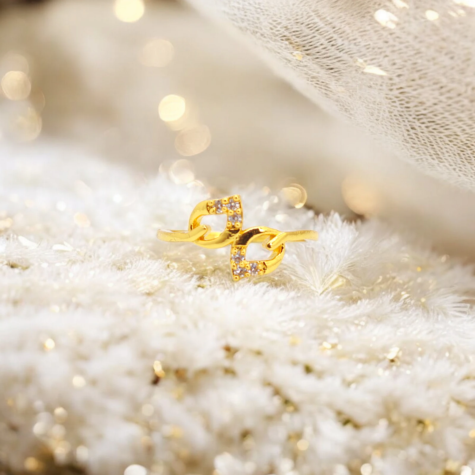 This radiant gold-polished ring features a delicate leaf design with shimmering CZ stones, perfect for adding a touch of sparkle.