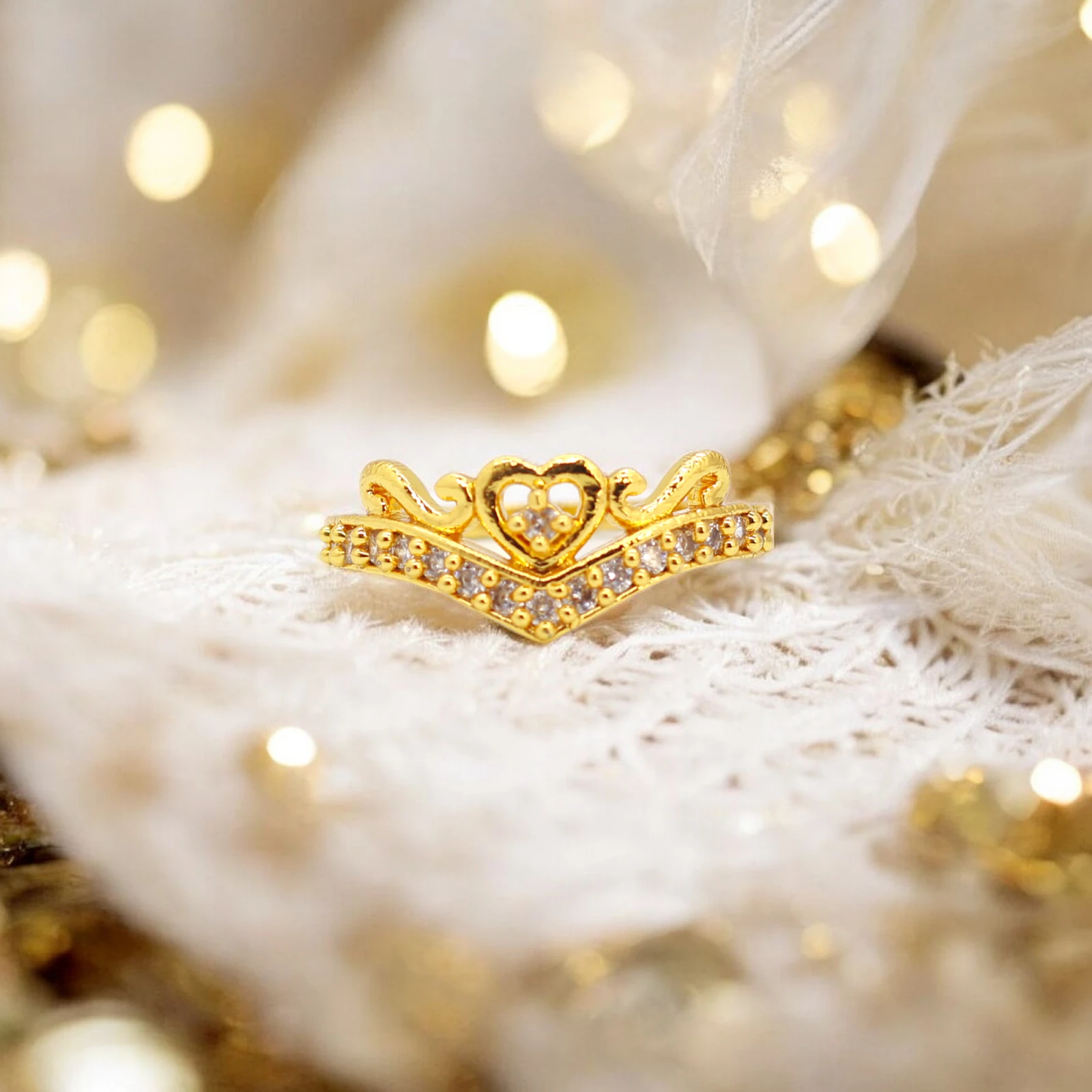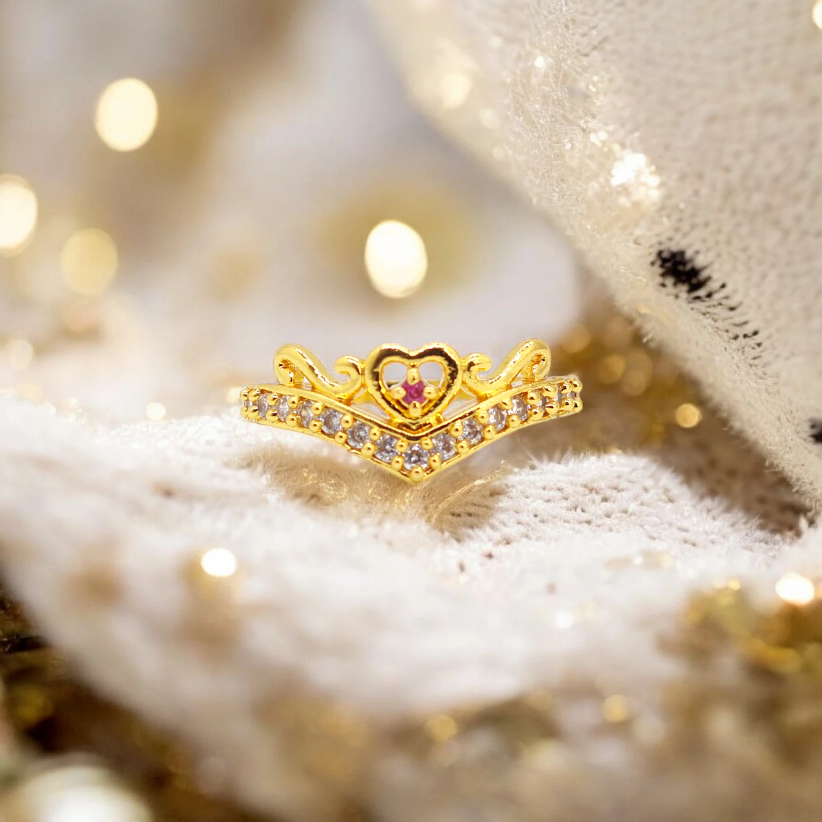Feel like royalty with this exquisite gold-polished ring designed in the shape of a crown and adorned with CZ stones.