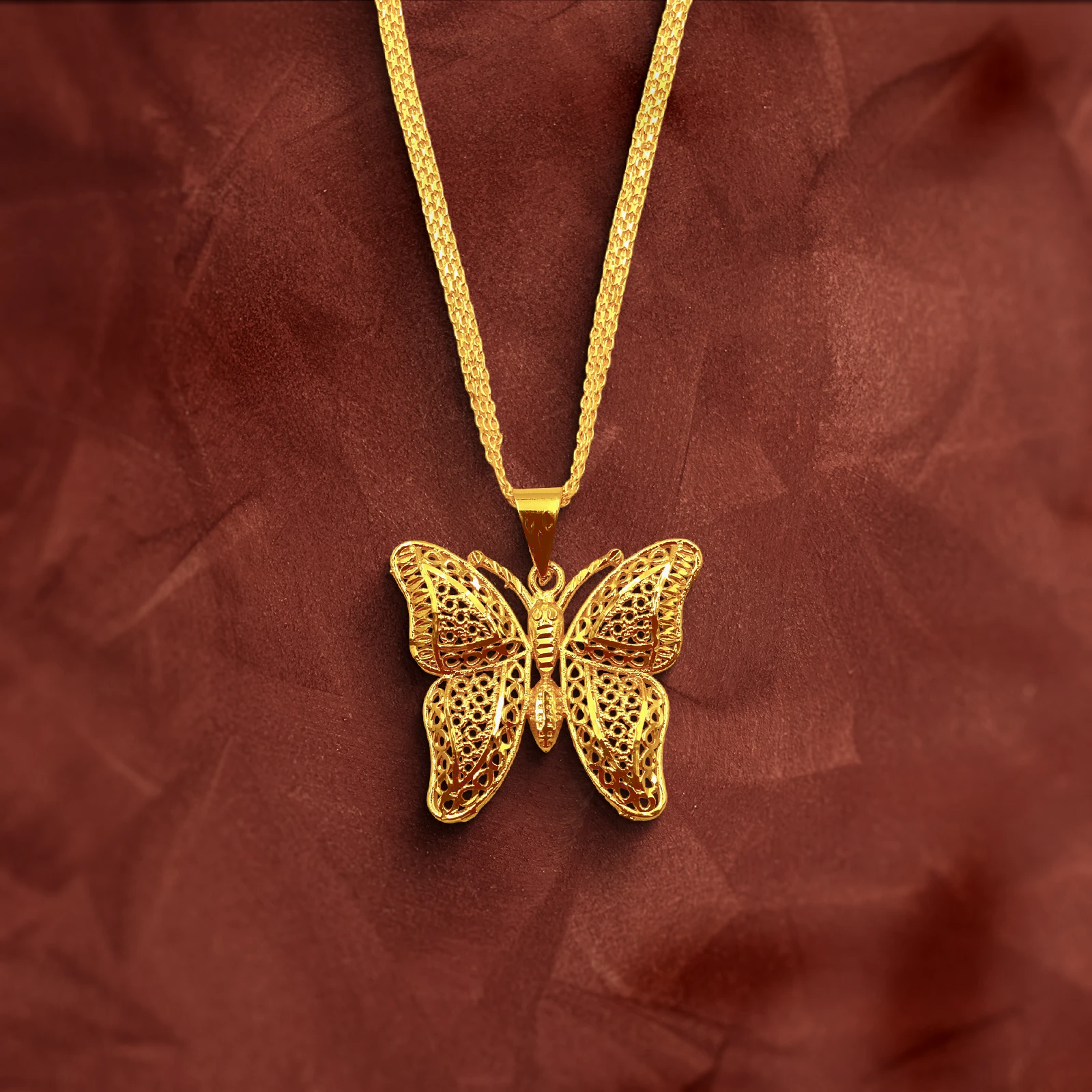 This timeless gold-plated butterfly pendant is perfect for any occasion.