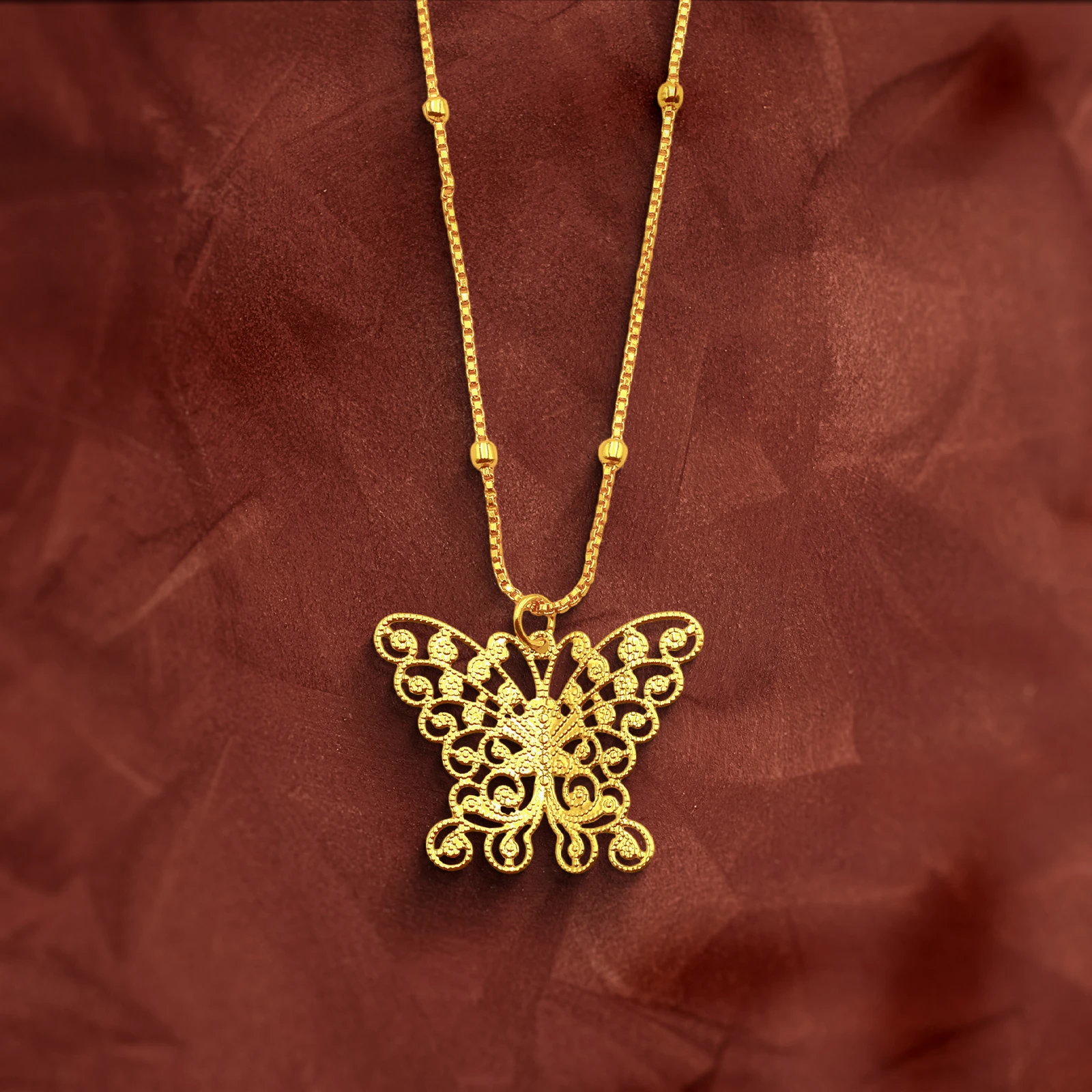 This gold-plated butterfly pendant brings a touch of nature's beauty to your jewellery collection.