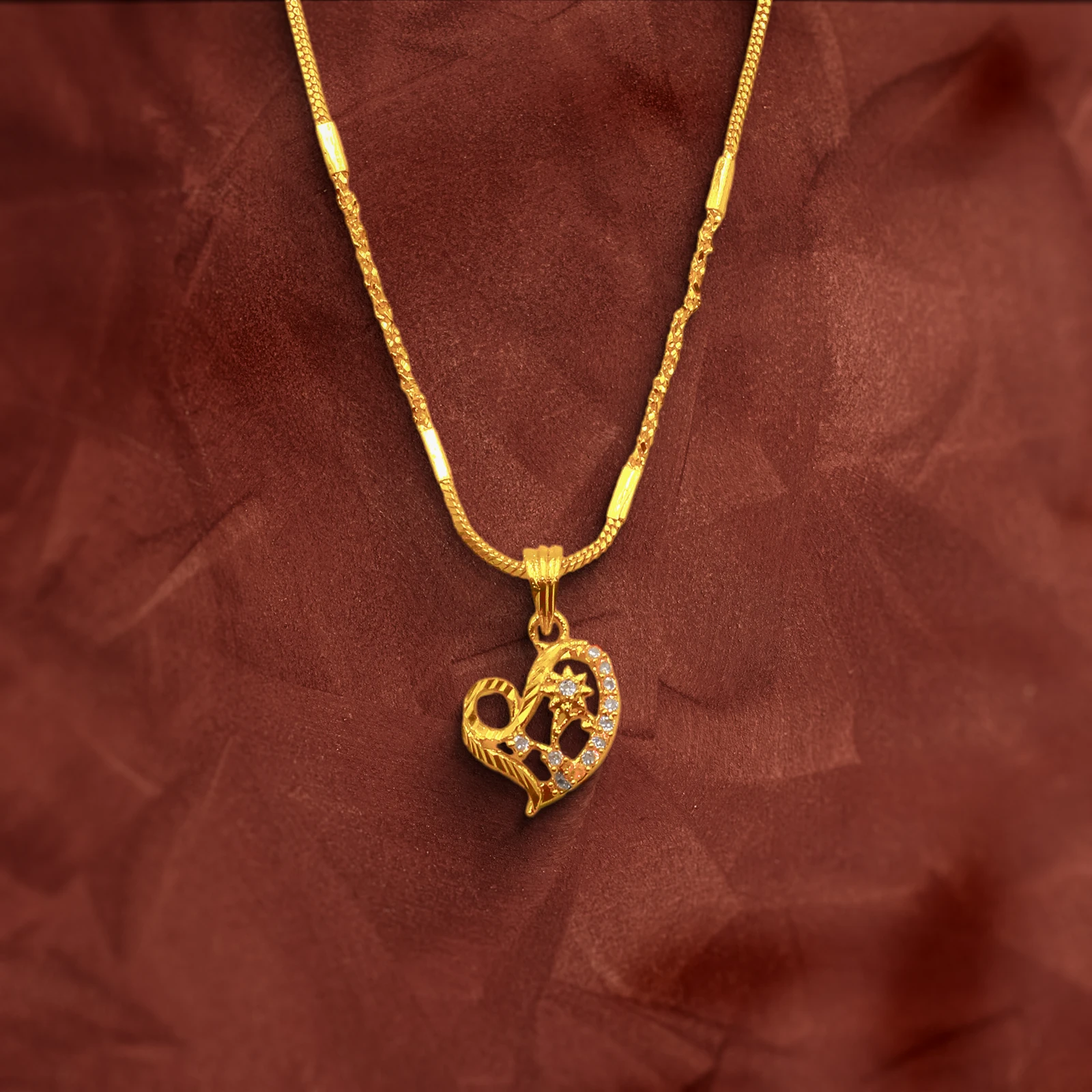 This gold-plated heart pendant on a simple chain showcases brilliant zircon stones that exude elegant simplicity.